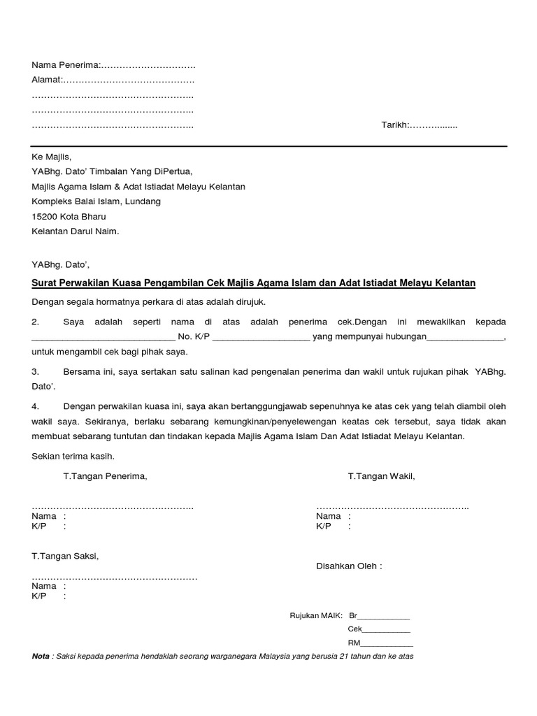 Surat Perwakilan Kuasa Pesurat Perwakilan Kuasa Pengambilan Cek Maikngambilan Cek Maik Pdf